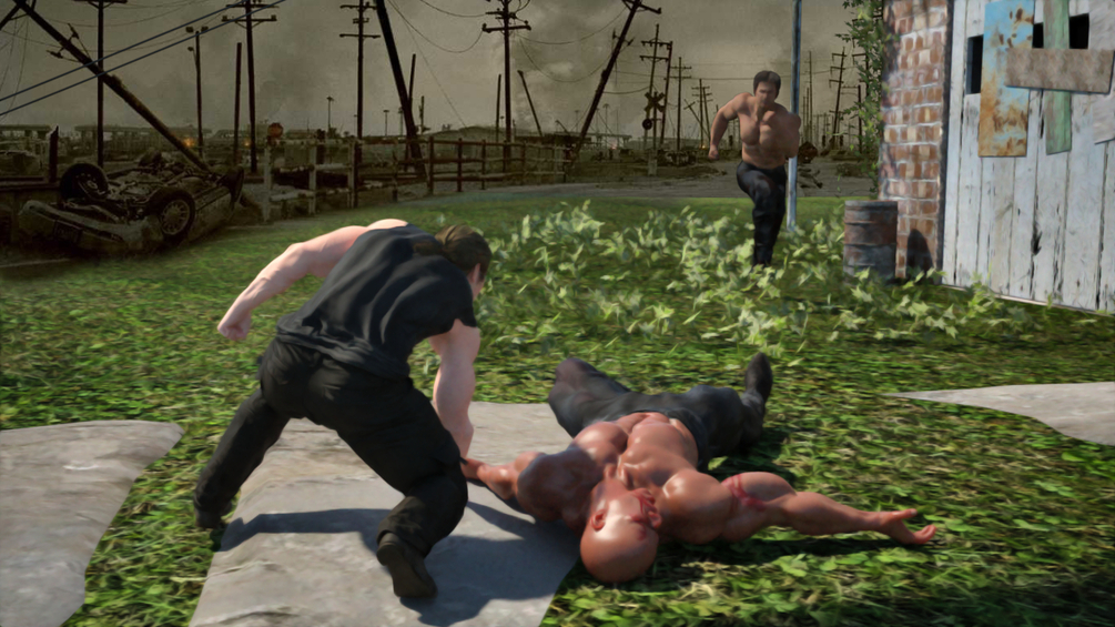 Abby is attacked by men, but she uses her strength and violence to neutralize them all as painfully as possible.